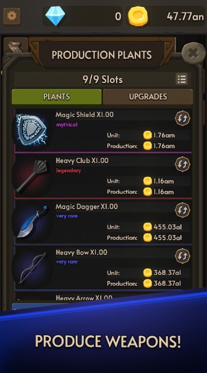 3、总之,放置武器库存是一款极具挑战性和趣味性的游戏,它将策略经营和闯关的元素完美融合在一起,让玩家在游戏中体验到无限的可能性和乐趣。