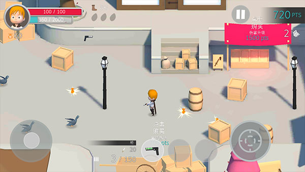 鸽子袭击是一款好玩的射击游戏,游戏的背景设定为一个被鸽子支配的世界,在游戏中玩家需要不断躲避鸽子,经过关卡后获得武器,使用武器将鸽子击败,在游戏中玩家将会感受到射击的乐趣。