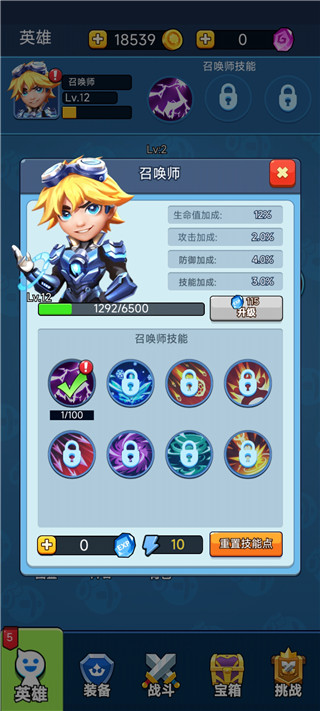 3、游戏中玩家你在商店招募英雄,点击开启的游戏关卡可以进入战斗!
