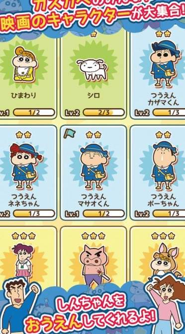熟悉的野原家族和风间防卫队(如风间坤)作为“音友”出现在游戏中,他将在游戏中支持新议员!当然,出现在电影中的角色会一个接一个地添加!而且,每个人都有自己的“技能”,例如Cosplay Shin-chan!根据游戏中角色扮演Shin-chan的稀有性,最多可设置三名玩家,所以让我们根据任务的内容和目的与不同的朋友一起玩!