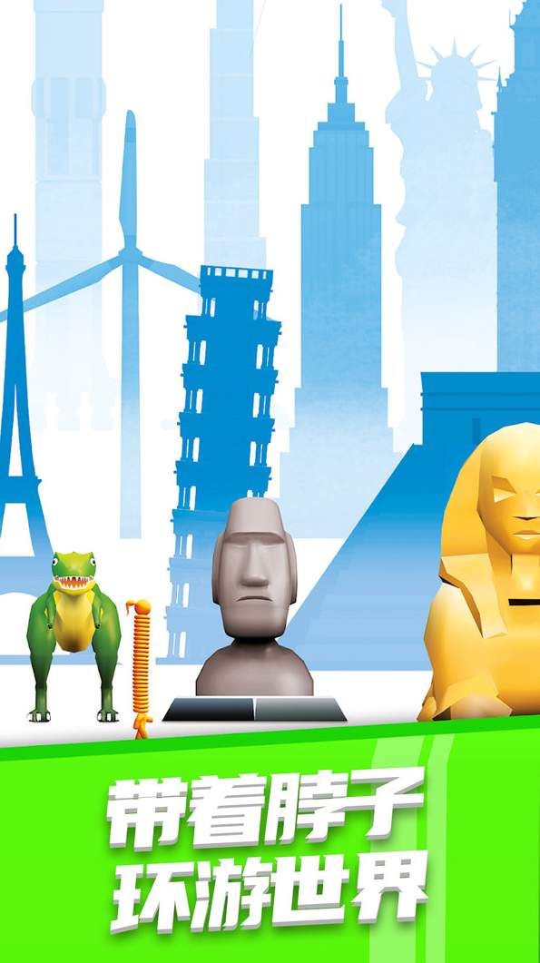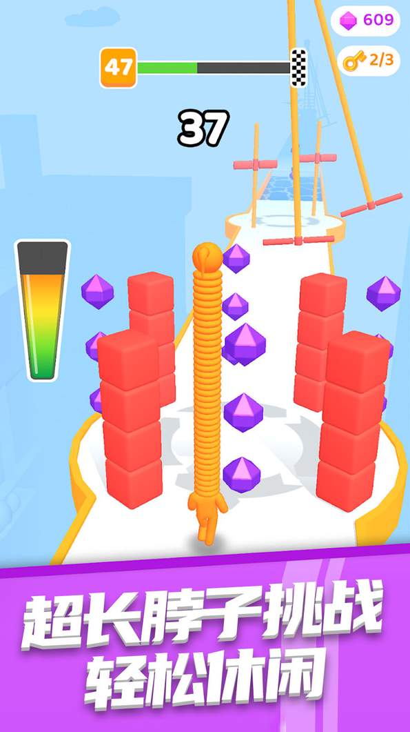 2、操纵可爱的小人物收集颈部长度并避开各种障碍,最终冲过终点线;