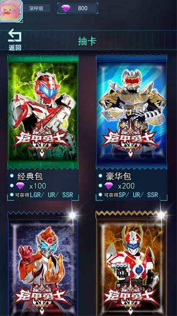 1、下载进入铠甲勇士拆包对战游戏,各个铠甲英雄等待你的召唤,点击卡包召唤他们;