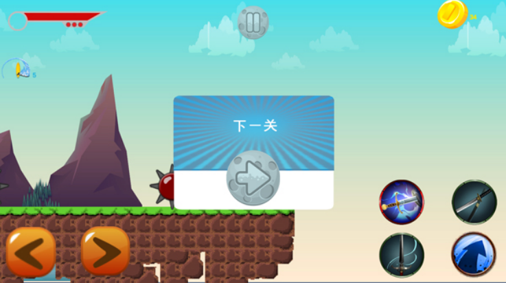 3、游戏内如图,玩家需操纵角色在平台上行动跳跃;