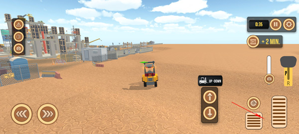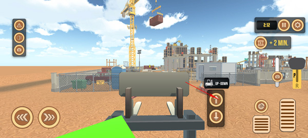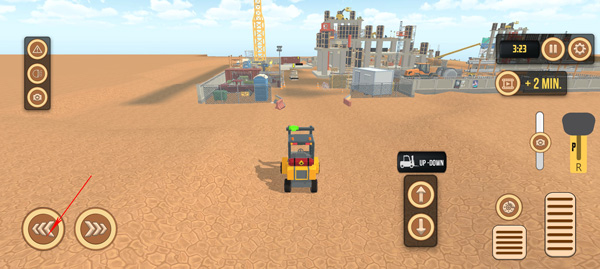 1、点击左下角的两个方向按钮分别是控制叉车的左右方向;