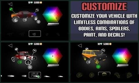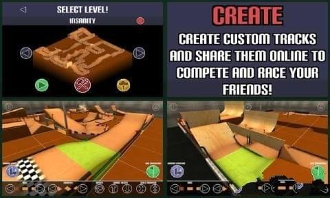 自定义您的车辆,创建你自己的赛道,在线去分享他们,全球排行榜与他们进行比试!