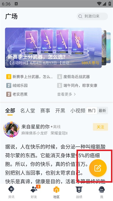 2、《和平营地》一键开放玩家社区,与更多玩家分享游戏体验,互动交流,敞开心扉。