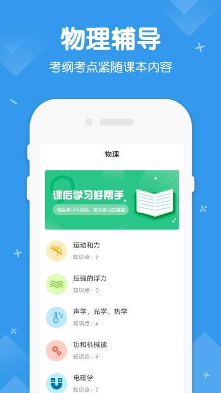 2、初中物理考纲考点,紧随课本内容,运动和力,压强的浮力,声学,光学,热学,功和机械能等,晦涩难懂的概念再也不是障碍。