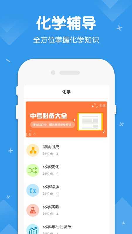 3、初中化学知识点一应俱全,包括了物质组成、化学变化、化学物质、化学实验等,从重点到难点,带你全方位掌握化学知识。