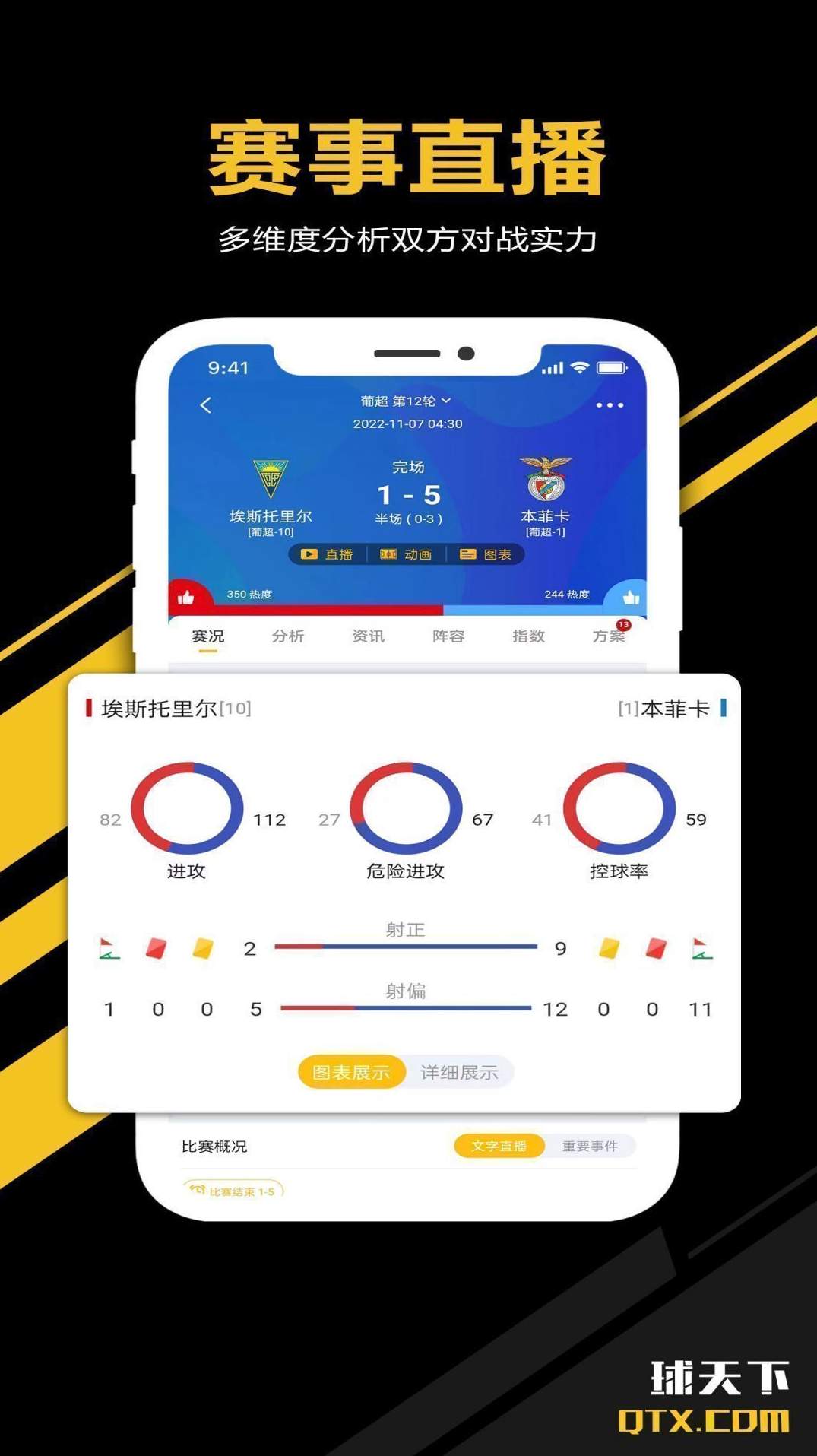 2、为体育爱好者提供体育比赛的信息动态和全方面的比分数据分析。
