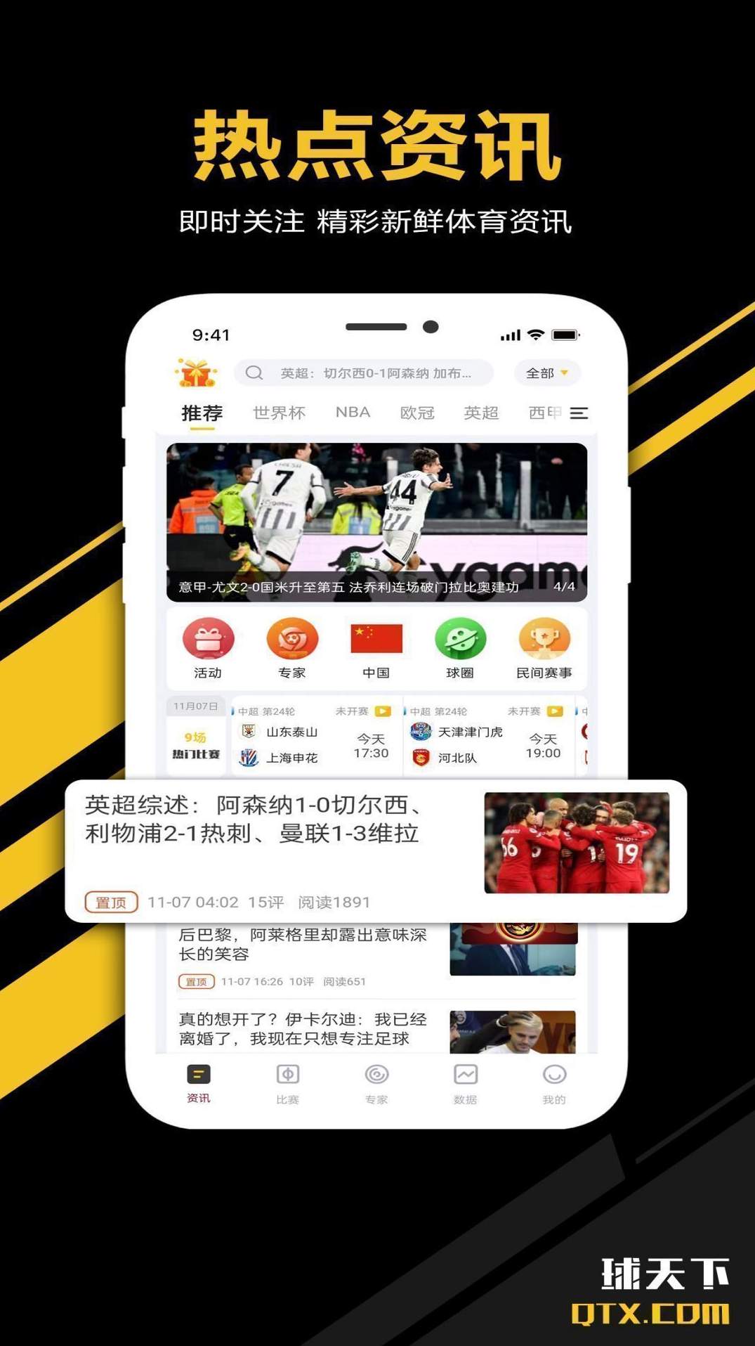 2、全球赛事新闻,足球篮球讯实时更新。涵盖欧冠、世界杯、欧洲杯、中超、英超、法甲、意甲、西甲、德甲、NBA等体育赛事,快速跟踪新消息、突发事件、比赛战报、战术分析等,为广大球迷网罗各大联赛、球队和球星的新动态。